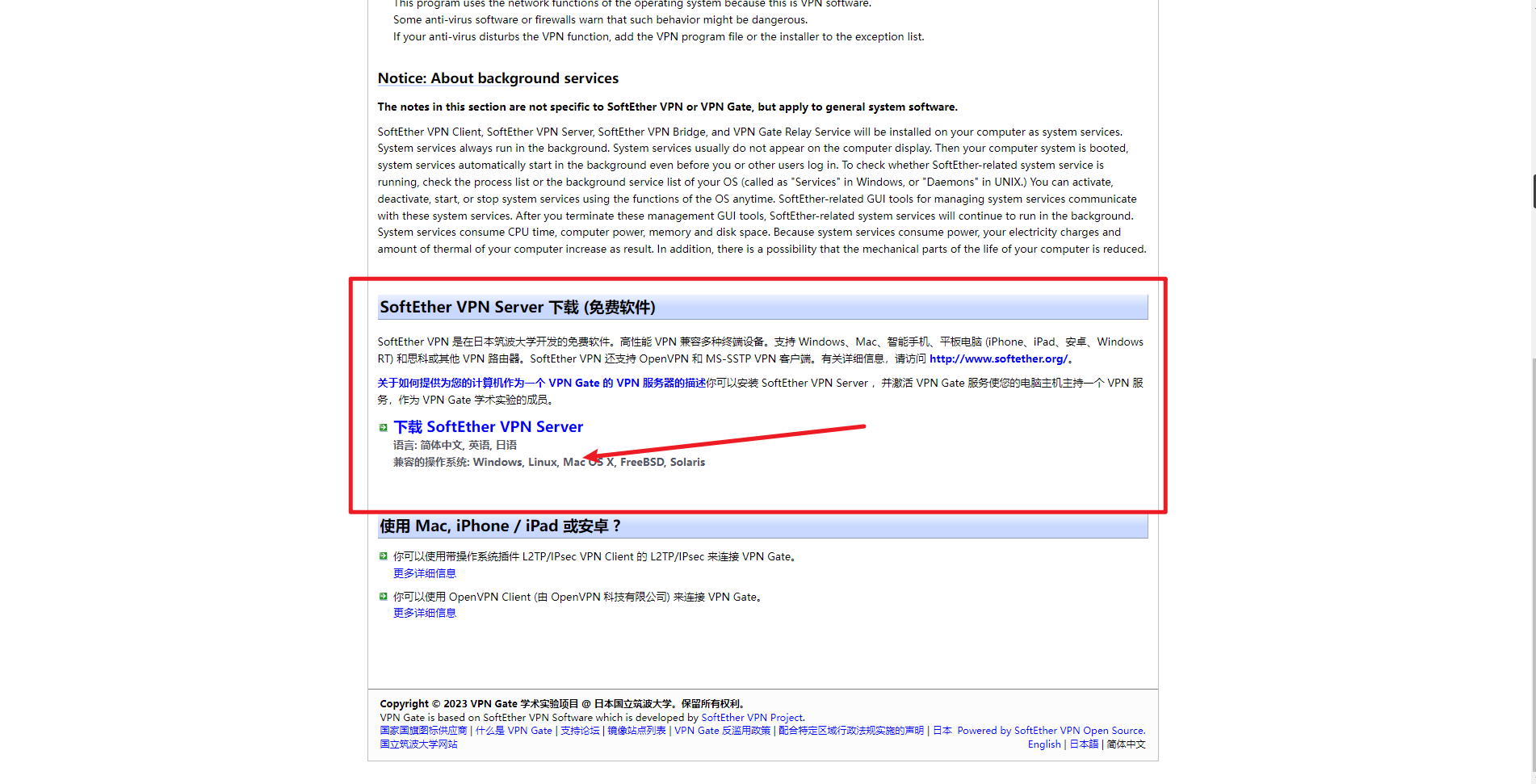 4.还有其他版本,请认真查看官网找到对应的版本,支持 Windows、Mac、智能手机、平板电脑 (iPhone、iPad、安卓、Windows RT) 和思科或其他 VPN 路由器。SoftEther VPN 还支持 OpenVPN 和 MS-SSTP VPN 客户端。